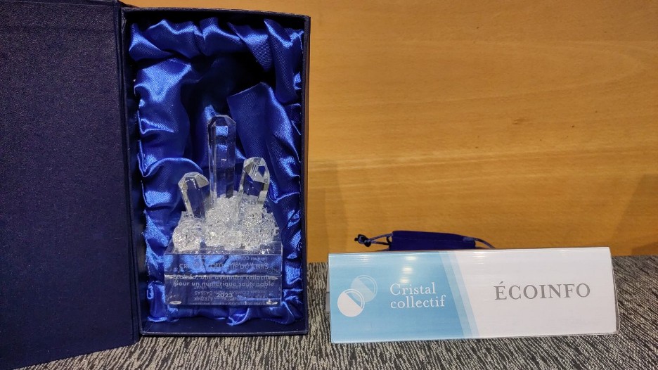 Flora Badin a reçu ce jour (1er décembre 2023) un cristal collectif du CNRS pour son activité au sein du GDS EcoInfo.